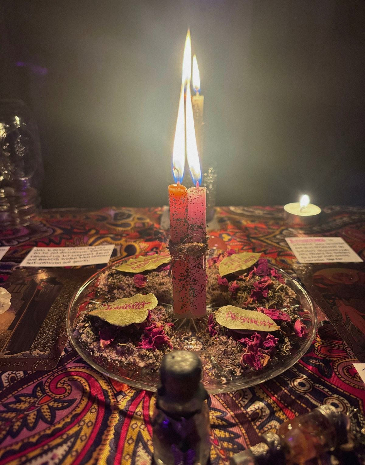 - 🕯️ Vela intencionada de temática amorosa — cargada y activada para enviar la energía hacia los dos
