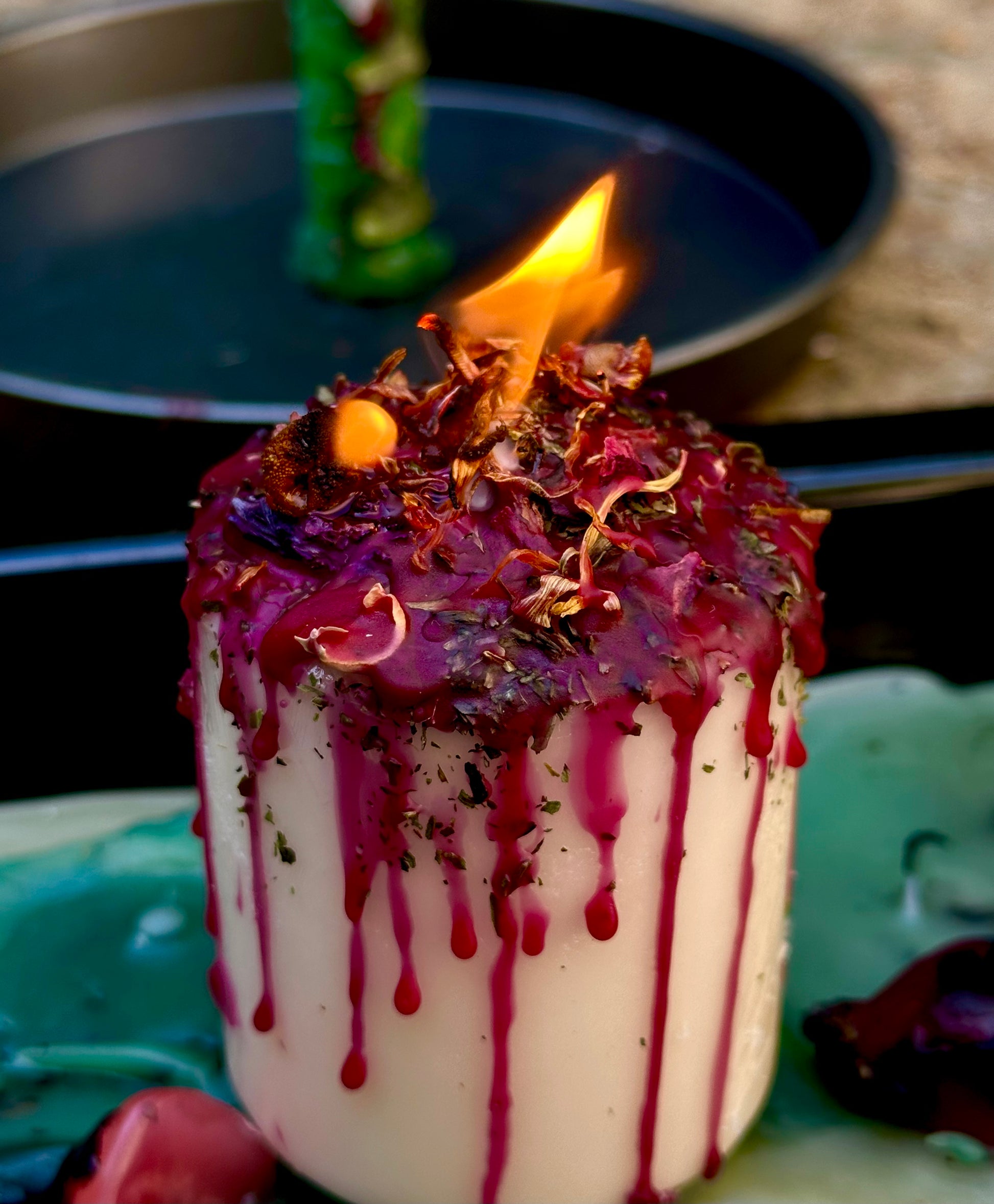 Es una vela artesanal y hecha a mano que contiene miel, Jamaica, Romero, Clavo, pétalos de rosa. Está activada y energizada de modo que tú y tu persona se puedan unir energéticamente a través de las hierbas y el fuego. El color rojo simboliza la pasión y el amor. Hace que esa persona piensa en ti y que la energía sea más intensa entre ambos.